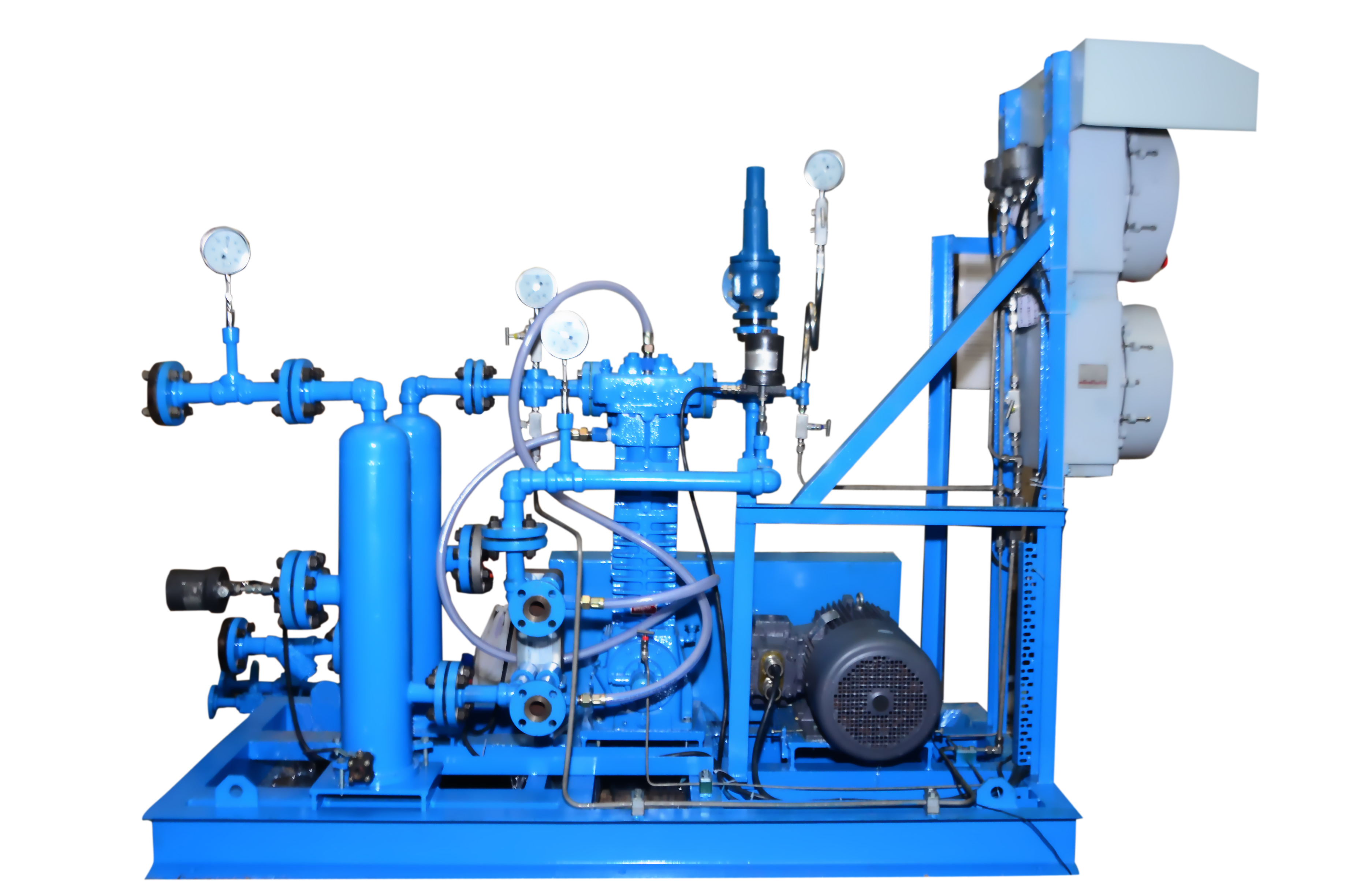 At ABODEX, we craft bespoke gas compression packages that cater to niche applications within the process industry. Our non-lubricated process gas compressors, sourced from esteemed manufacturers like Blackmer, Mehrer, are the cornerstone of our systems. We import the bare block compressors from our principals in the US and Europe and meticulously engineer the entire system to meet the specific needs of your processes. Our expertise extends to the engineering, procurement, and packaging of skid-mounted units, ensuring a streamlined solution from start to finish. We conduct thorough Factory Acceptance Testing (FAT) and Site Acceptance Testing (SAT) to guarantee performance and reliability. Furthermore, we offer comprehensive Annual Maintenance Contracts (AMC) or Annual Rate Contracts (ARC) to ensure the longevity and efficiency of your systems. In addition to our non-lubricated compression solutions, we specialize in the manufacturing of rotary vane gas compression systems. Utilizing Sliding Vane compressors from RO-FLO USA, we design and assemble complete systems locally in India, providing tailored solutions to our diverse customer base. .